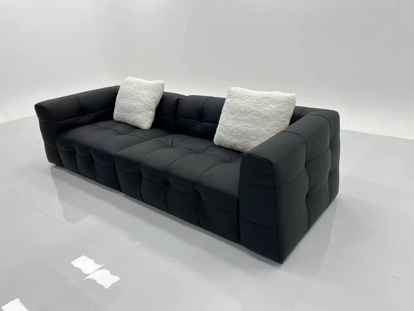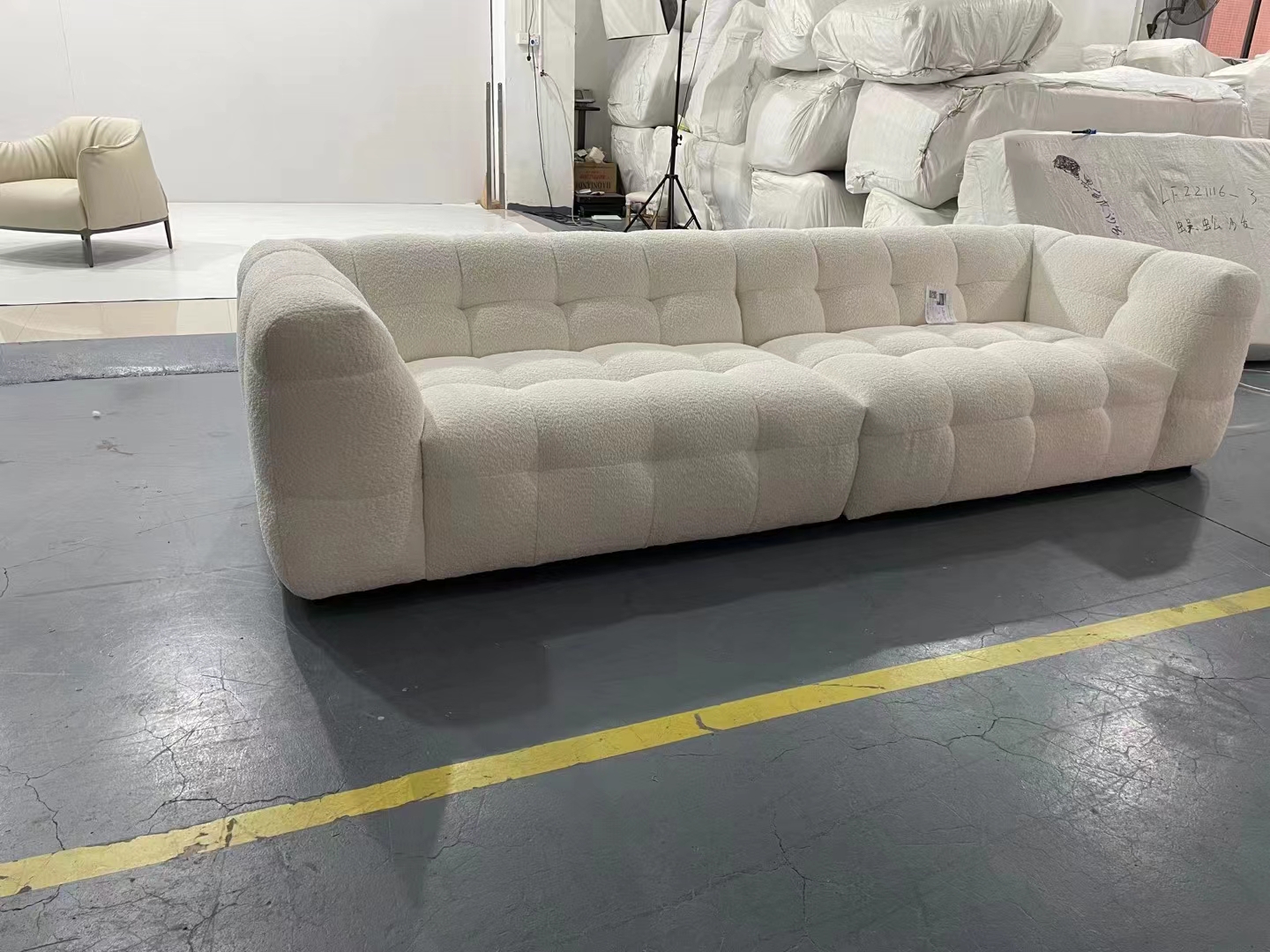尺寸2.4米深度1米,羊羔绒面料+45D紫罗兰高回弹海绵+羽绒+俄罗斯松木框架
